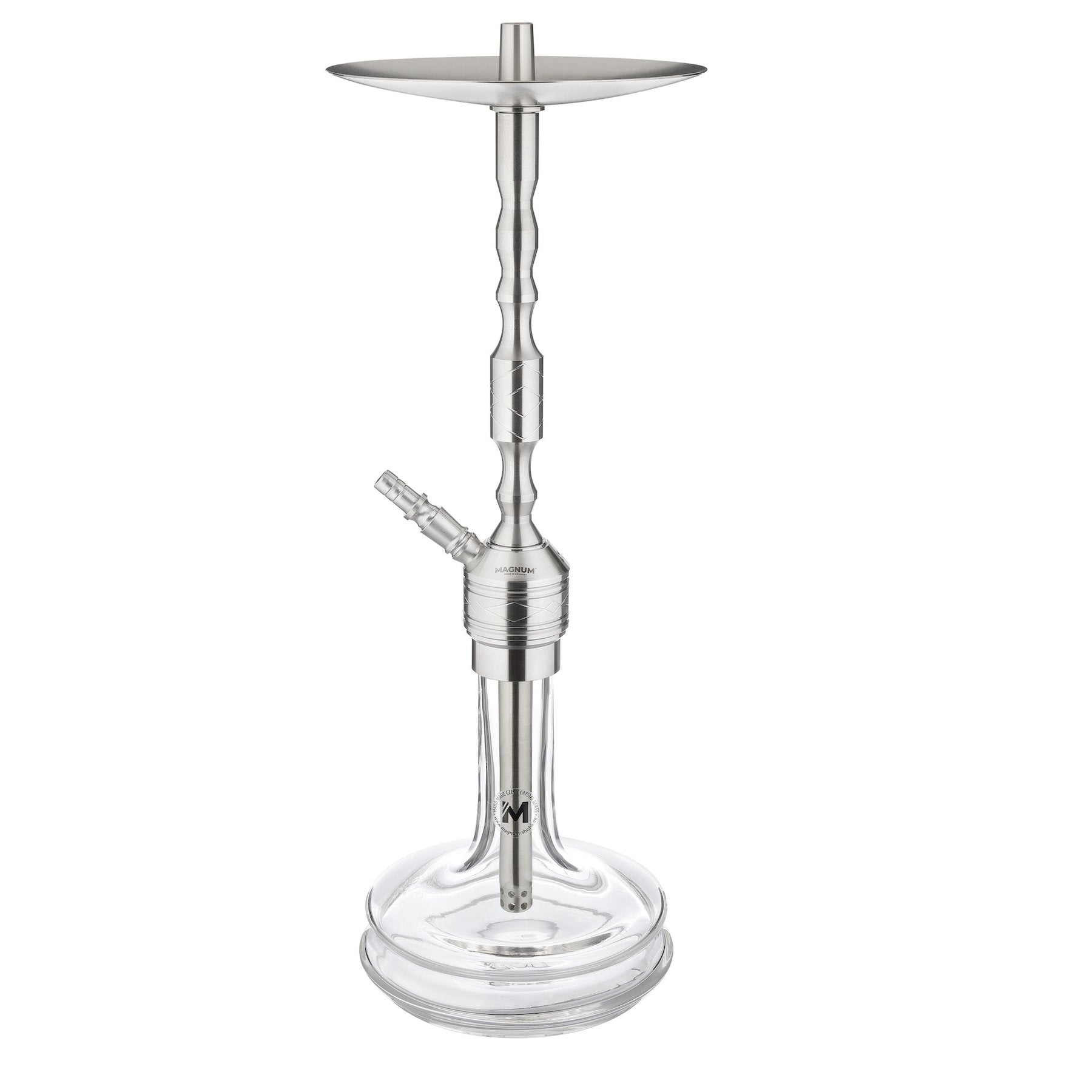 MAGNUM SHISHA Revolution 4S Master Clear - TÜV sertifikalı üretim süreciyle Almanya'da üretilen nargile. “Industry” model serisinden MAGNUM Nargilenin her teknik detayında yenilik var. Olağanüstü kalitenin yanı sıra nargilenin işlevselliği ve tasarımı da etkileyicidir. Duman kolonunun tasarımı tek başına teknik kalitenin buraya da yansıdığını gösteriyor. Nargilenin tüm metal parçaları paslanmaz çelikten yapılmıştır. Çek cam sanatı ustaları kaseleri kristal camdan yapıyorlar. Asırlık Osmanlı sigara içme geleneğinden ilham alan tasarımcılar, kristal camdan yapılmış özel el yapımı MAGNUM Kase'yi geliştirmek için tasarımcılarla birlikte çalıştı. Çek cam sanatı ustaları kaseleri en iyi el işçiliğiyle yapıyor. Cam gövde ağızda üflenir ve daha sonra işlenir, böylece her kase gerçekten benzersizdir. Özel kalitesi ilk bakışta görülebilen Bohem kristal camdan tasarım ürünleri bu şekilde yaratılıyor. Magnum Industry valf topları pnömatik endüstrisinden gelen kauçuktan yapılmıştır. Lastik top yapışmaz ve sigara içme deneyimini geliştirir! Bu arada: Orijinal MAGNUM kaseli bir nargileniz olup olmadığını kolayca anlayabilirsiniz: her MAGNUM kasenin altında logodaki M harfini bulacaksınız.